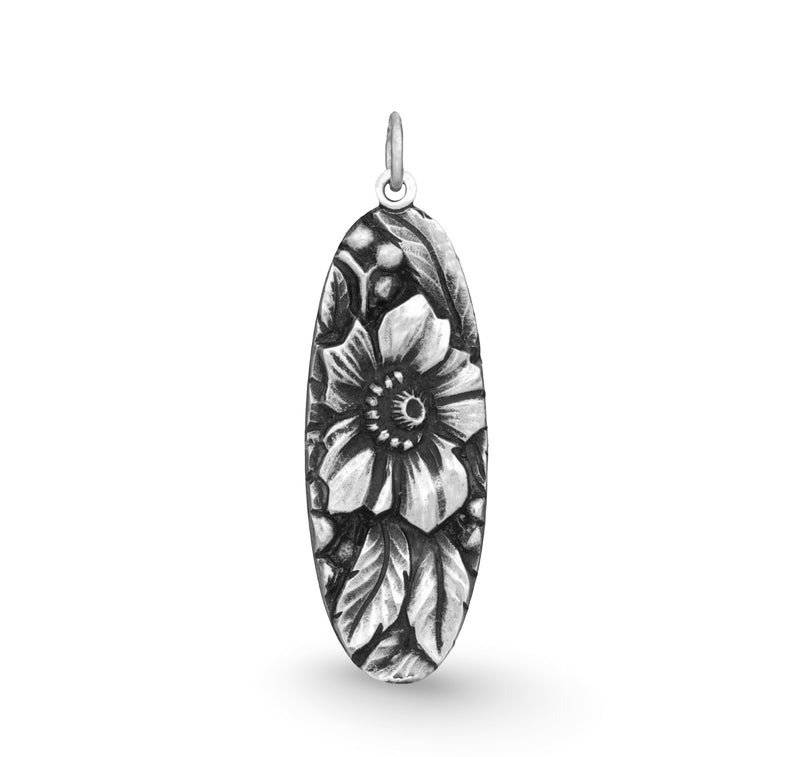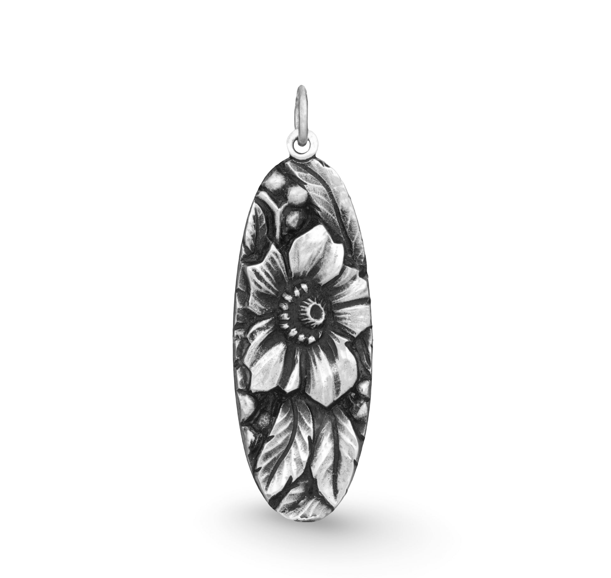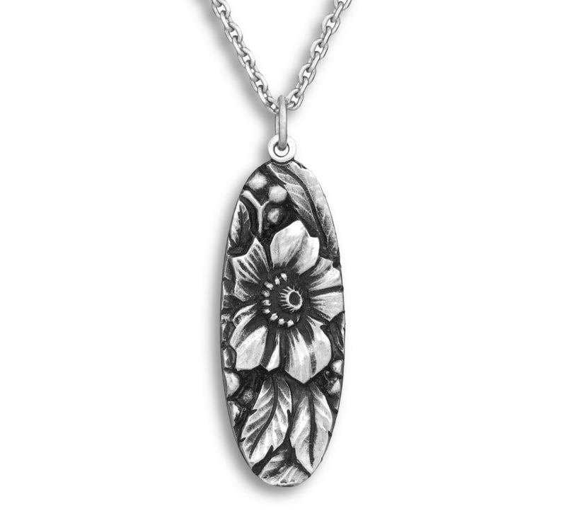 This beautiful oval pendant features hand-carved anemone which thought to bring luck and protect against evil.