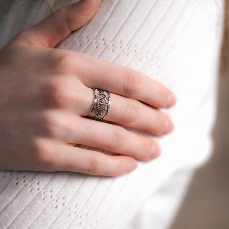 This cigar band is woven with delicate beads of metal, making for a lacey finish.