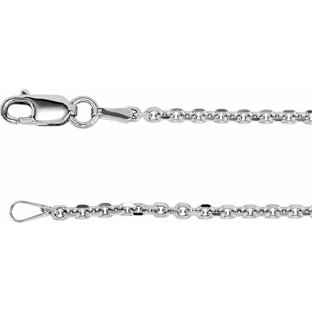 Chain: This sleek rhodium-plated sterling silver cable chain offers both durability and elegance. Featuring a diamond-cut finish, each link reflects the light for a subtle sparkle, adding refinement to any look. Measuring 1.75mm in width and 20 inches in length, it provides a versatile fit that complements a wide range of pendants. The secure lobster clasp ensures comfort and reliability, making this chain a timeless choice for both daily wear and special occasions.
