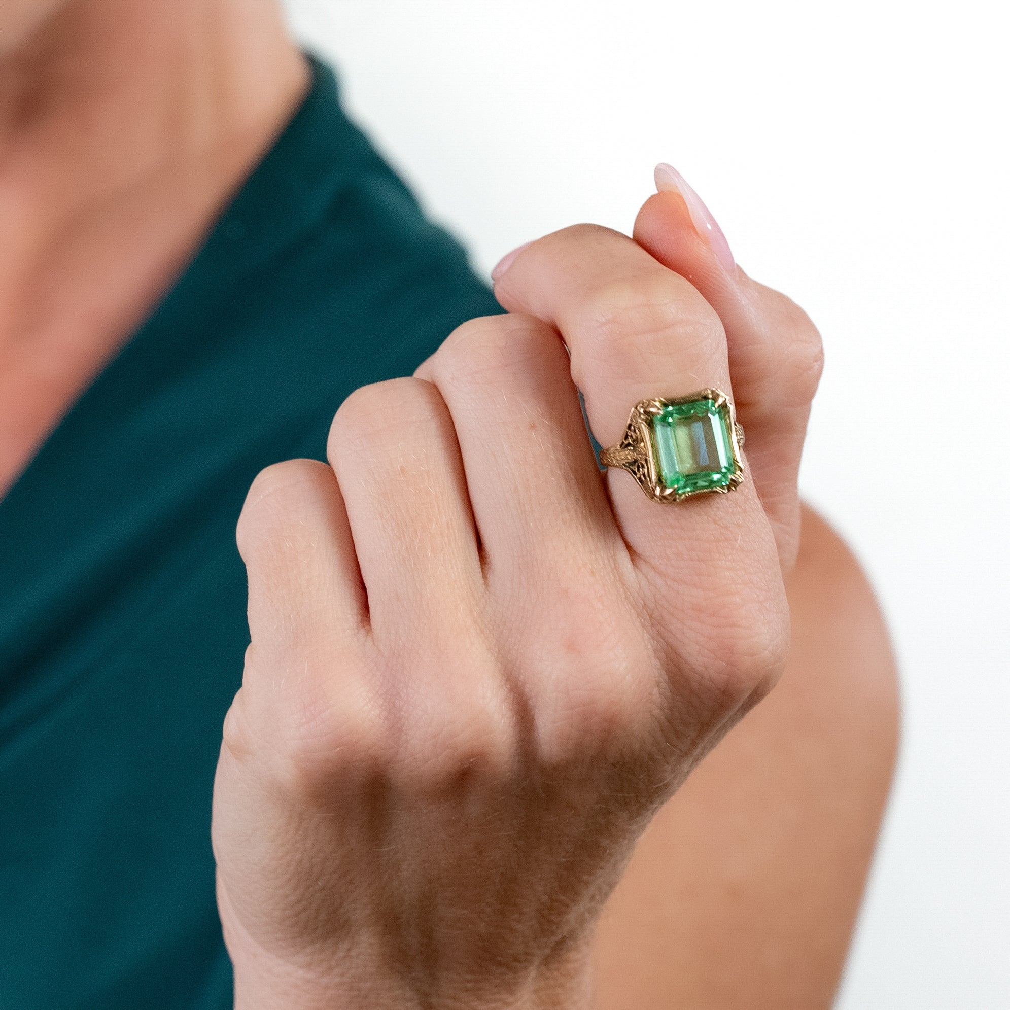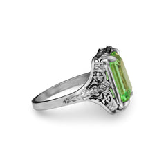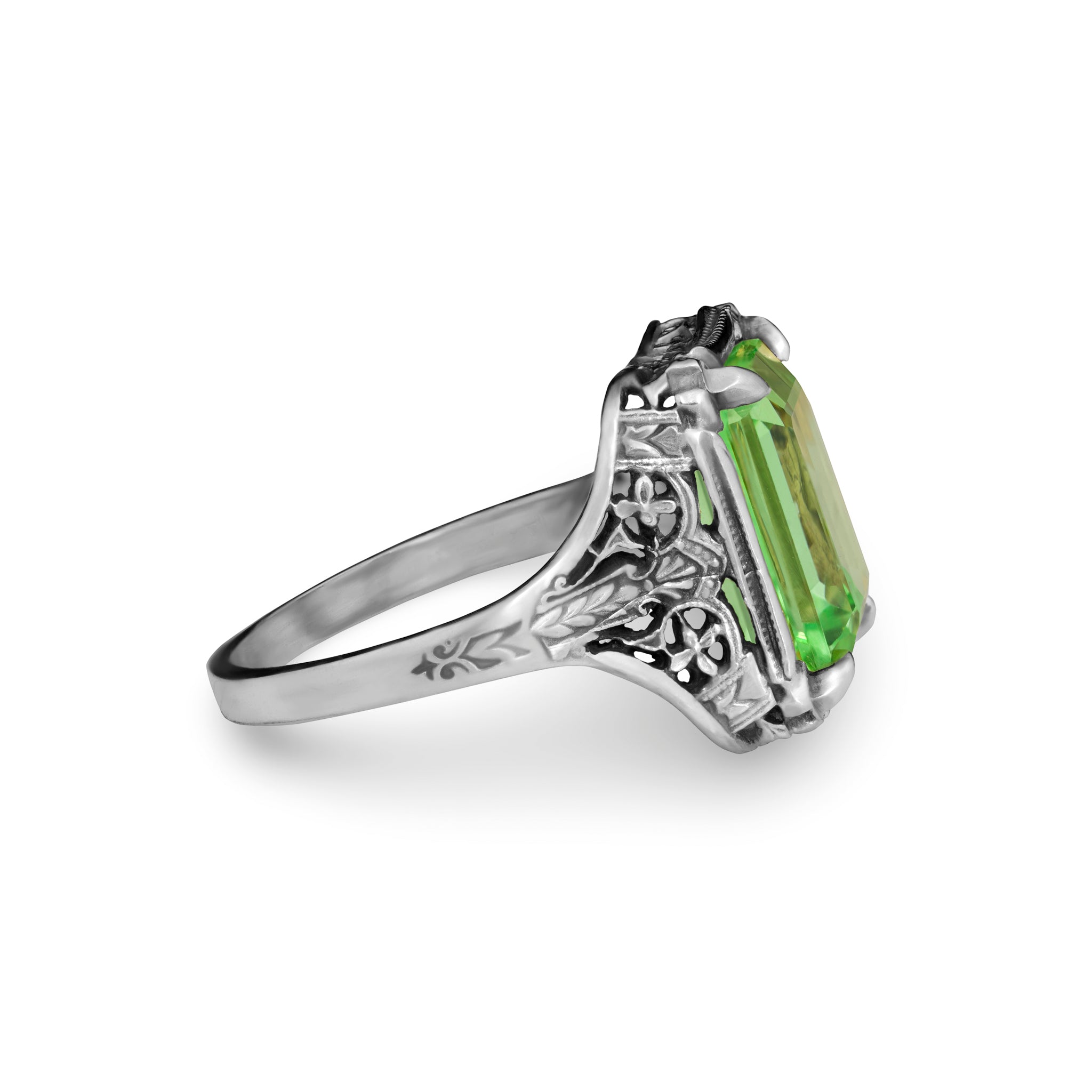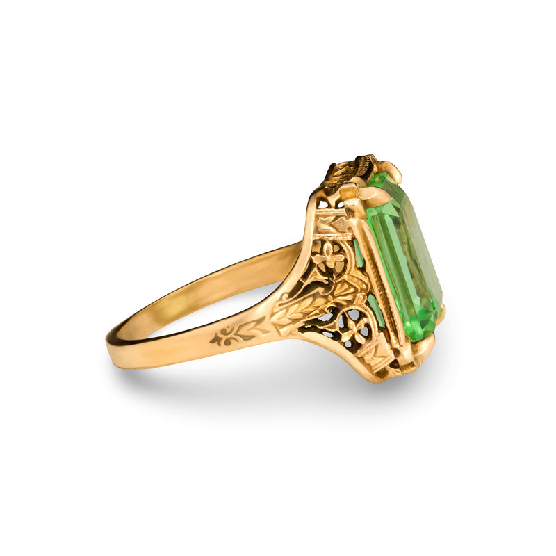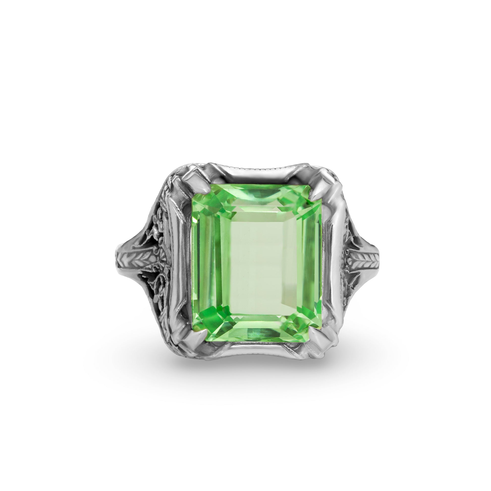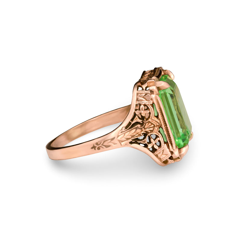 Dawn is set with a 12 x 10mm emerald-cut stone which is beautifully framed in a filigree ring.