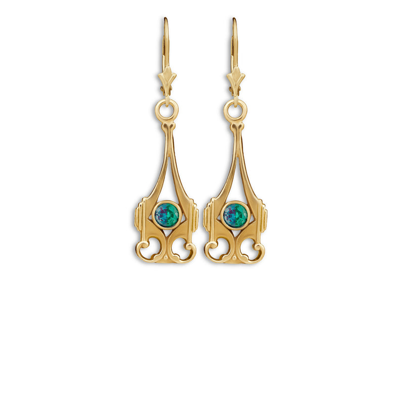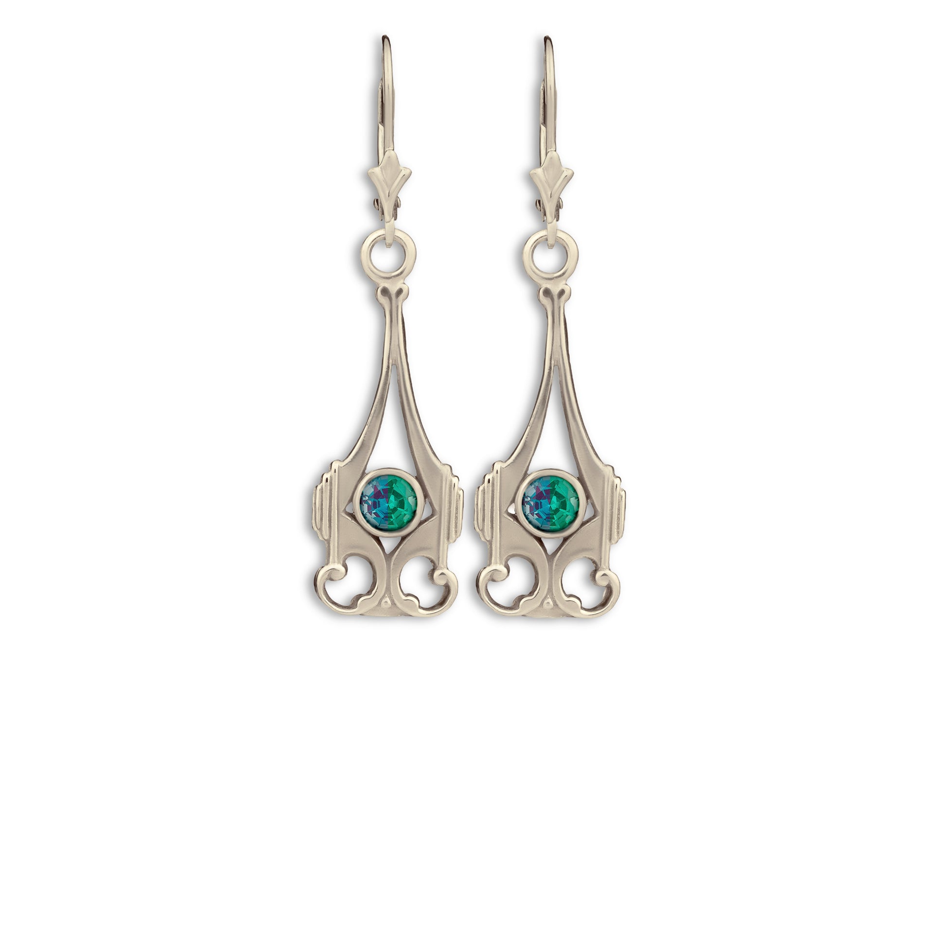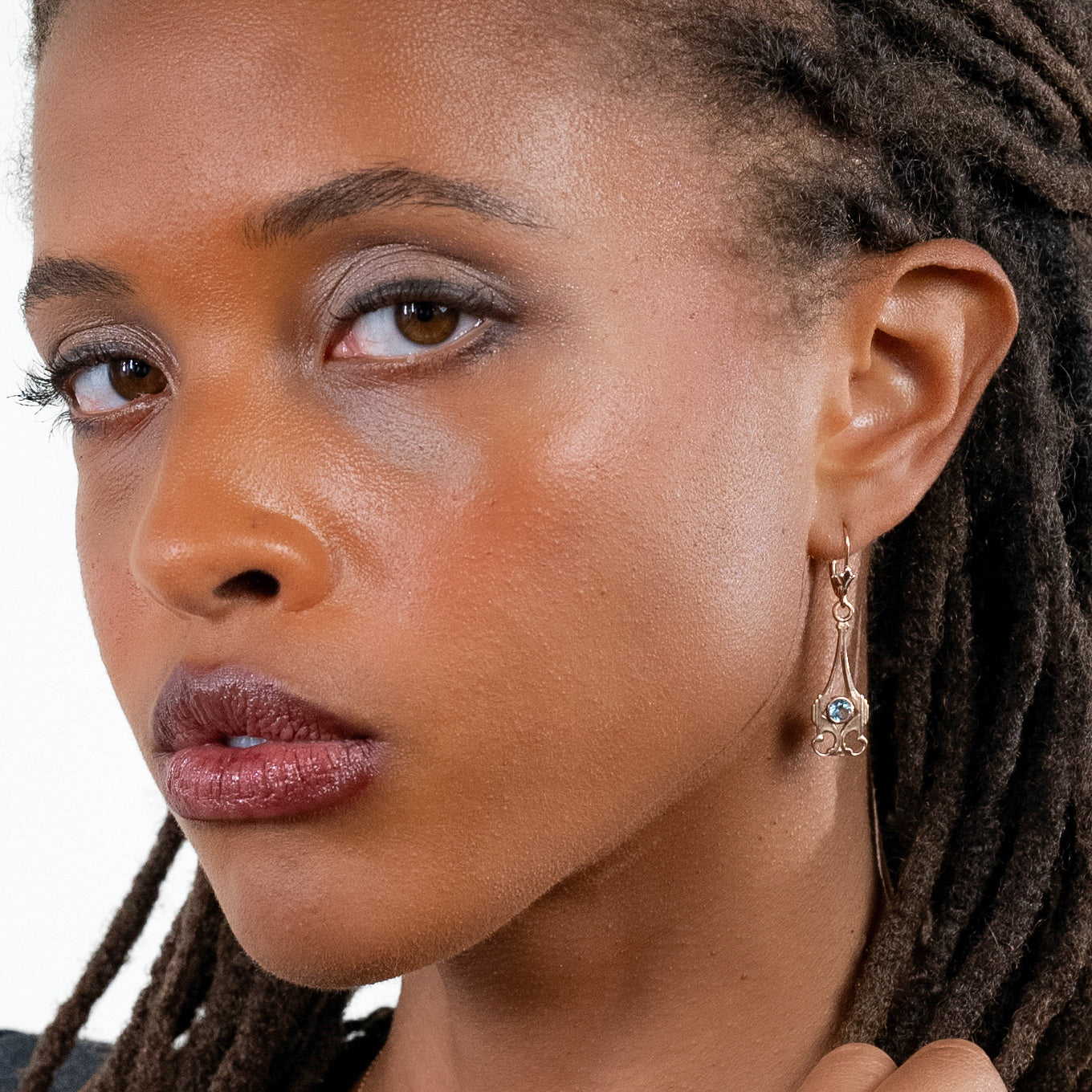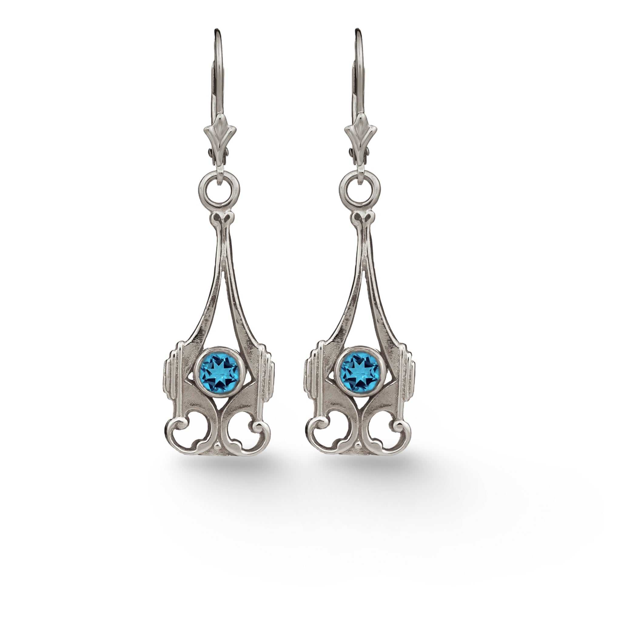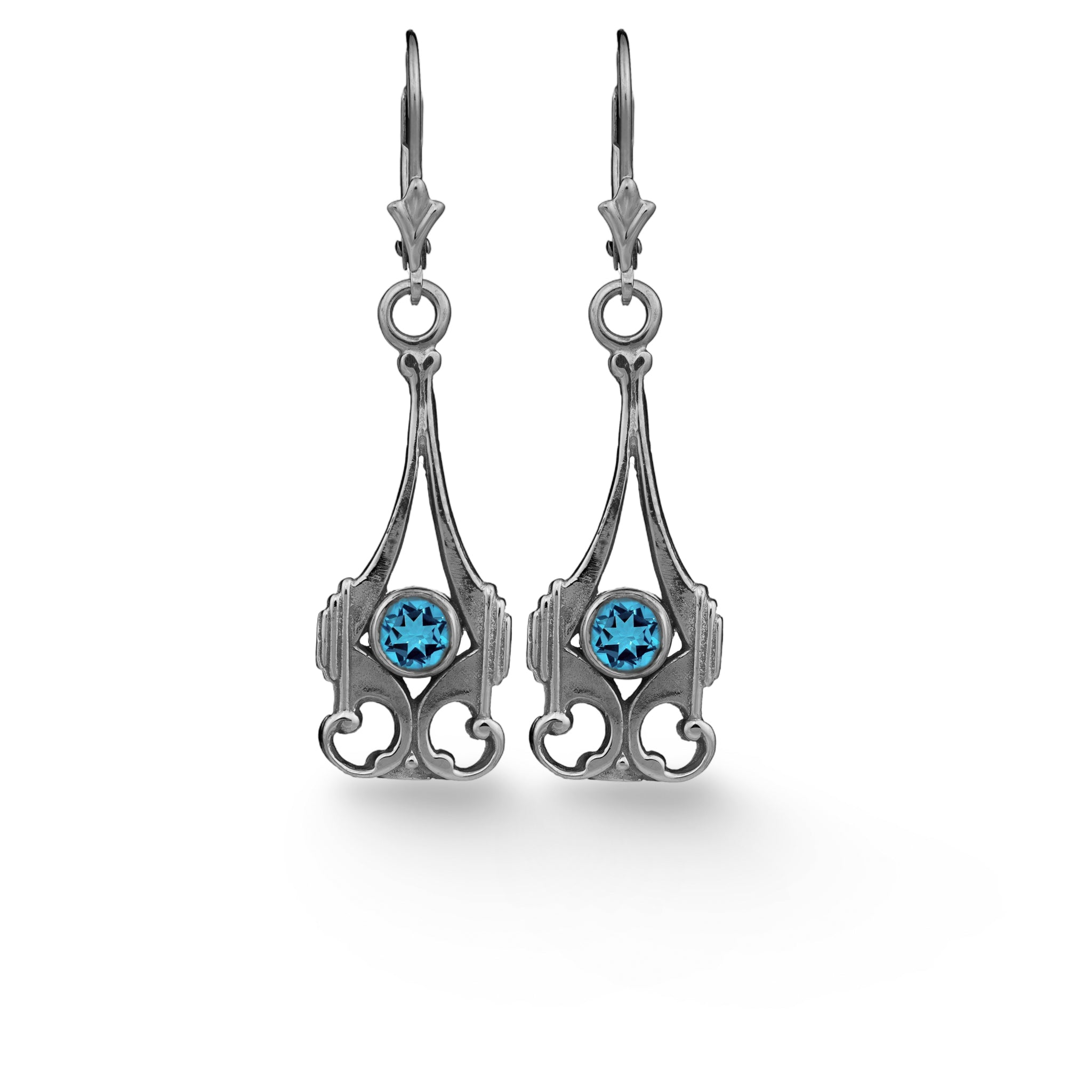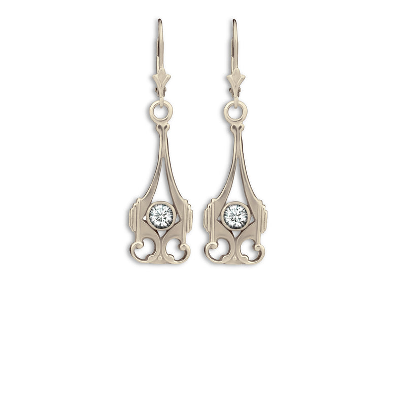 Art Deco drops with a 4.5mm bezel set gemstone.