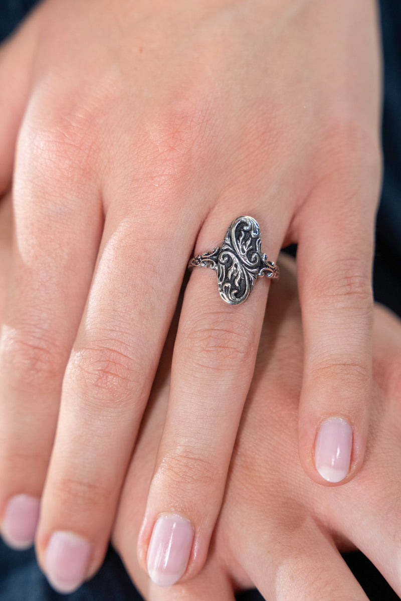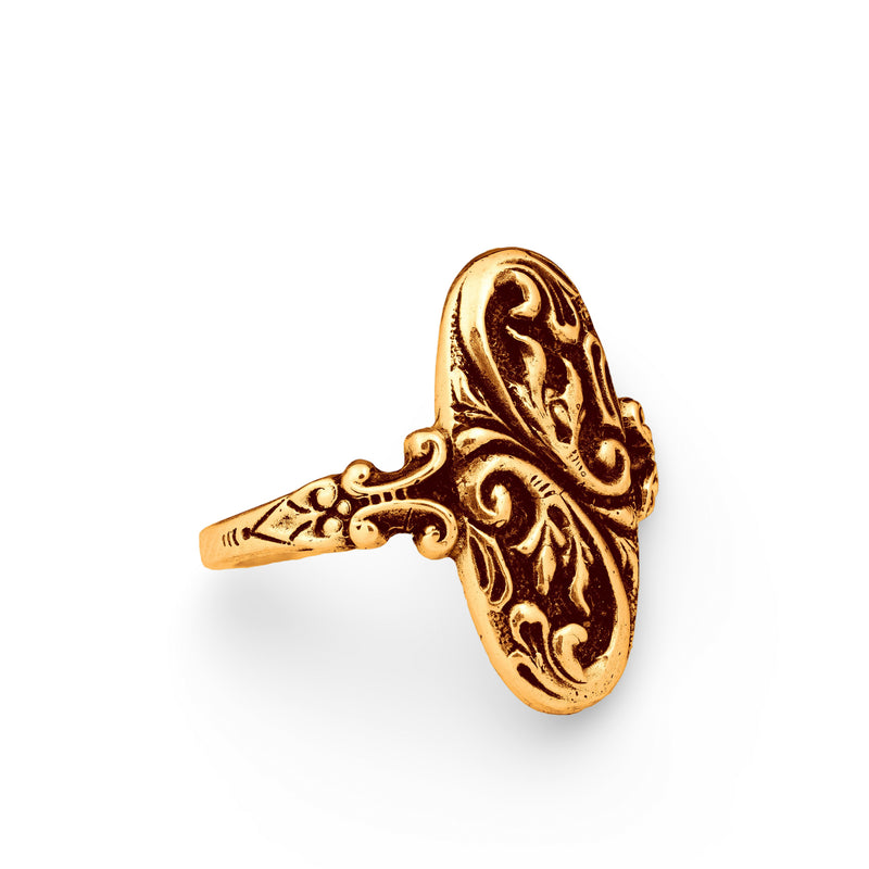 The perennial acanthus leaf engraved on this whimsey ring appears through the ages as a symbol of wisdom, health, and eternity.