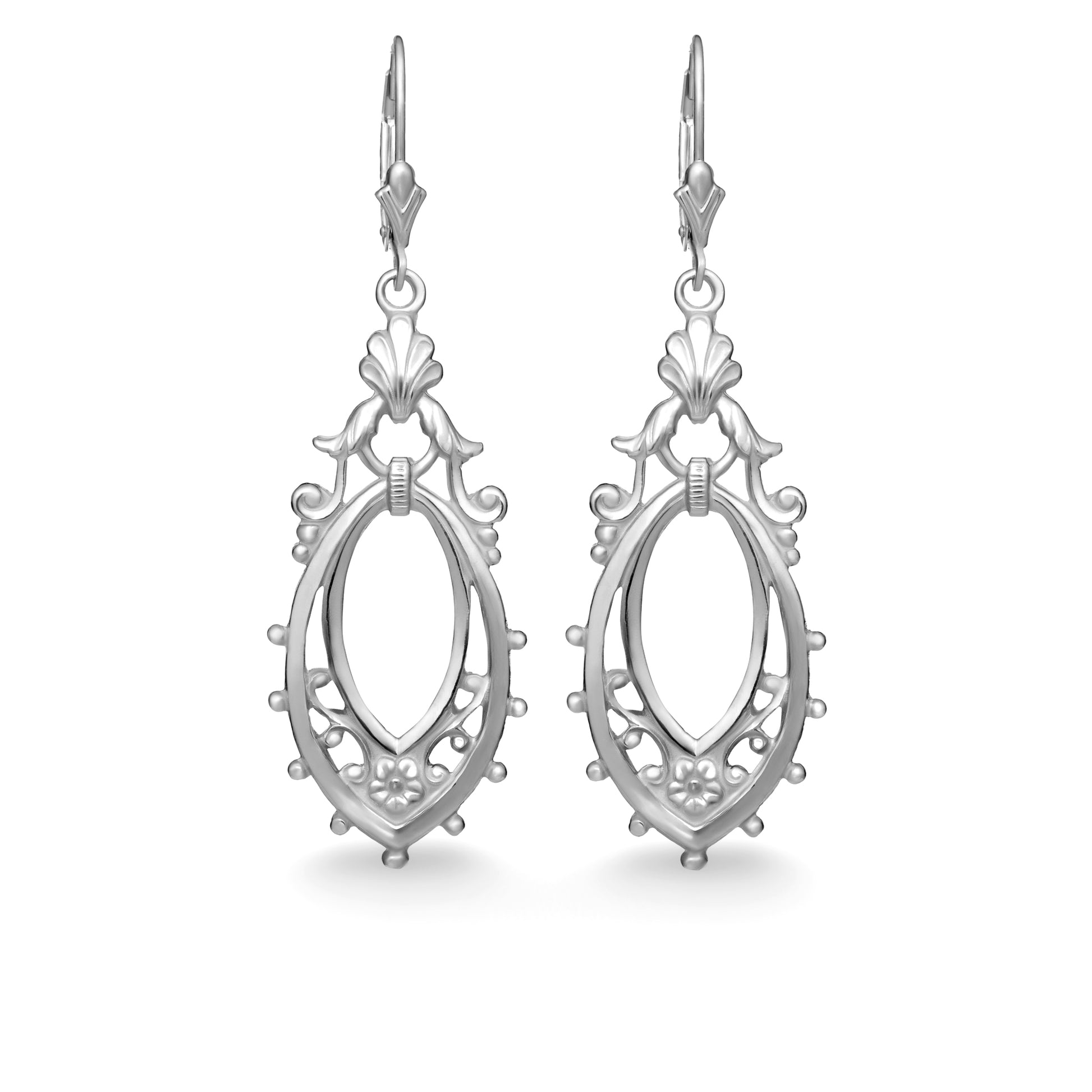 Dramatic and unforgettable, the Victorian design of these earrings features a sweet Forget-Me-Not Flower and graceful Acanthus leaves that symbolize true love, wisdom, health, and eternity.