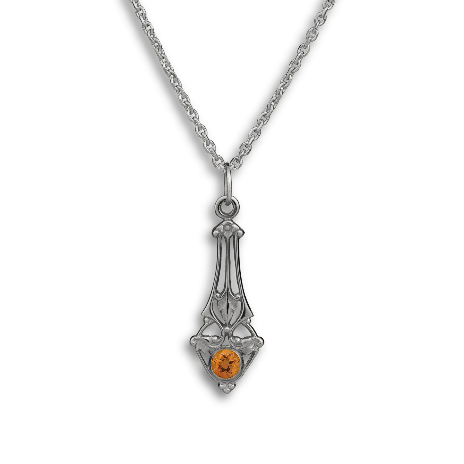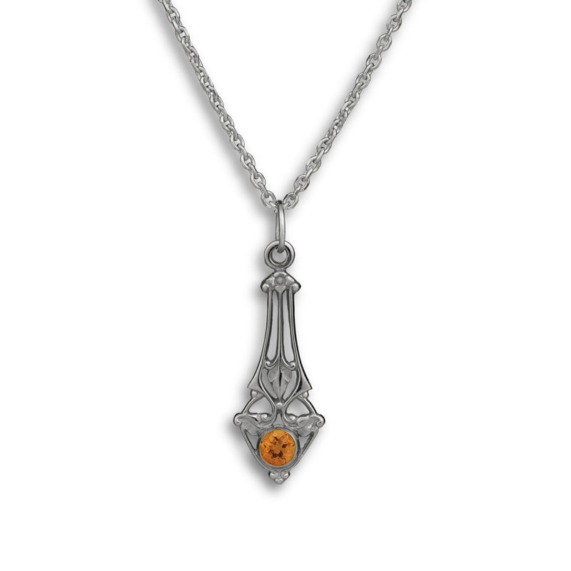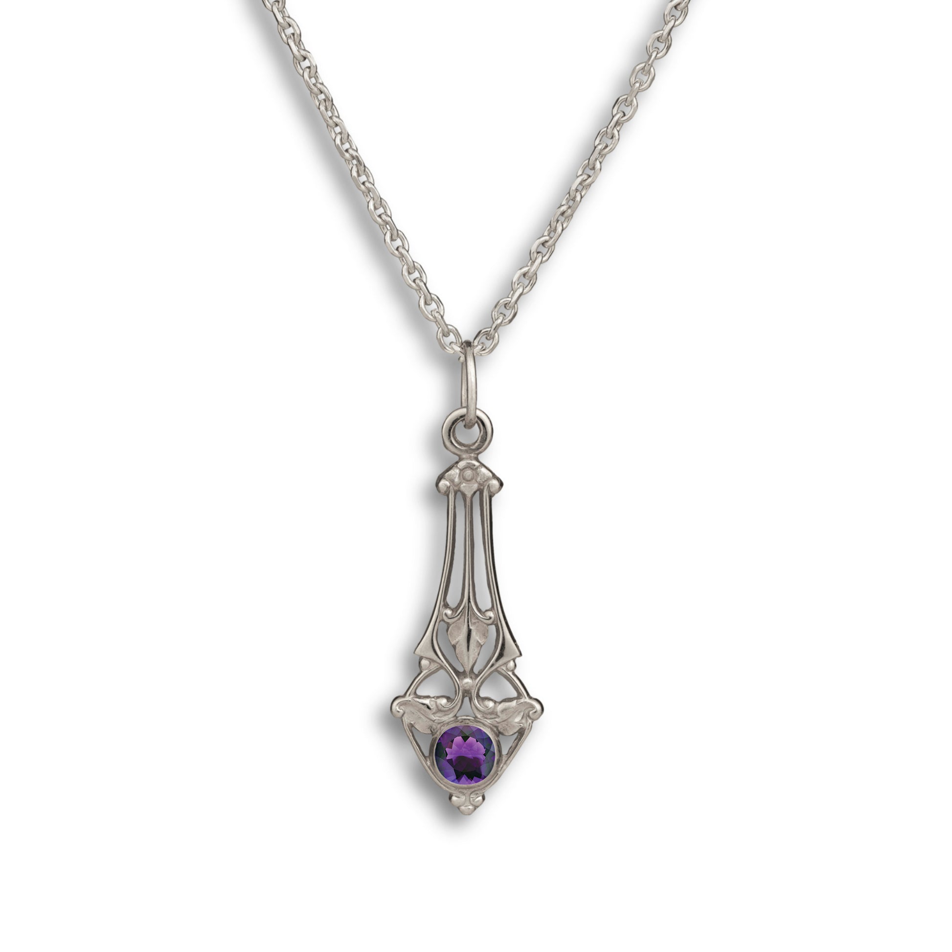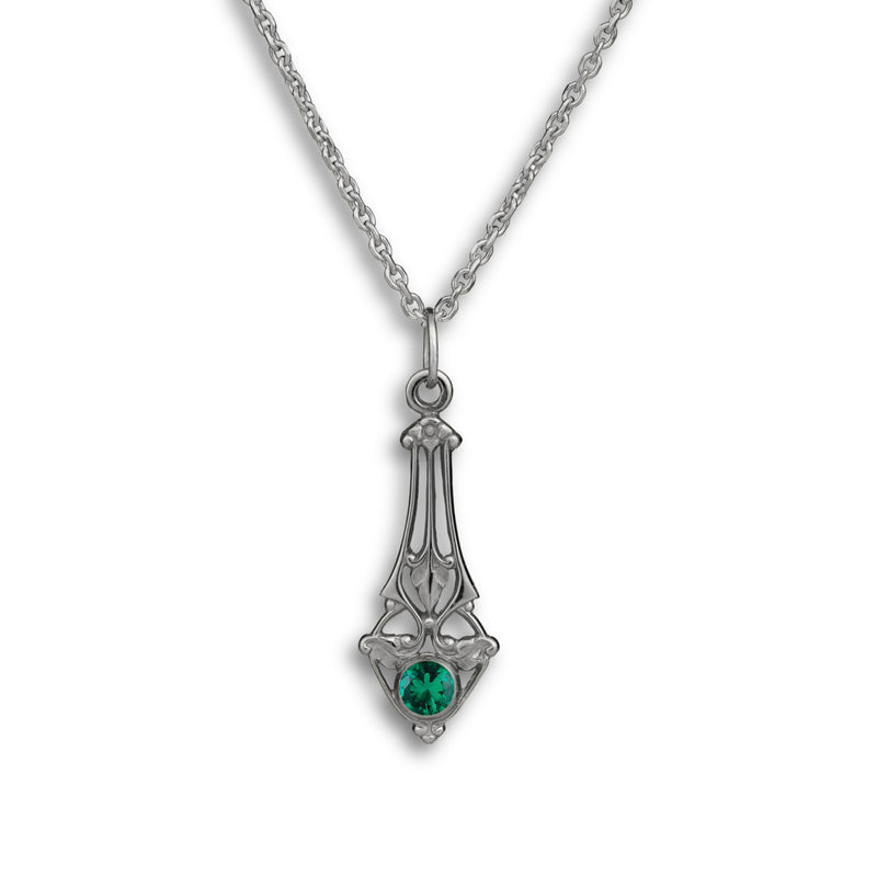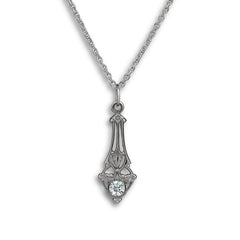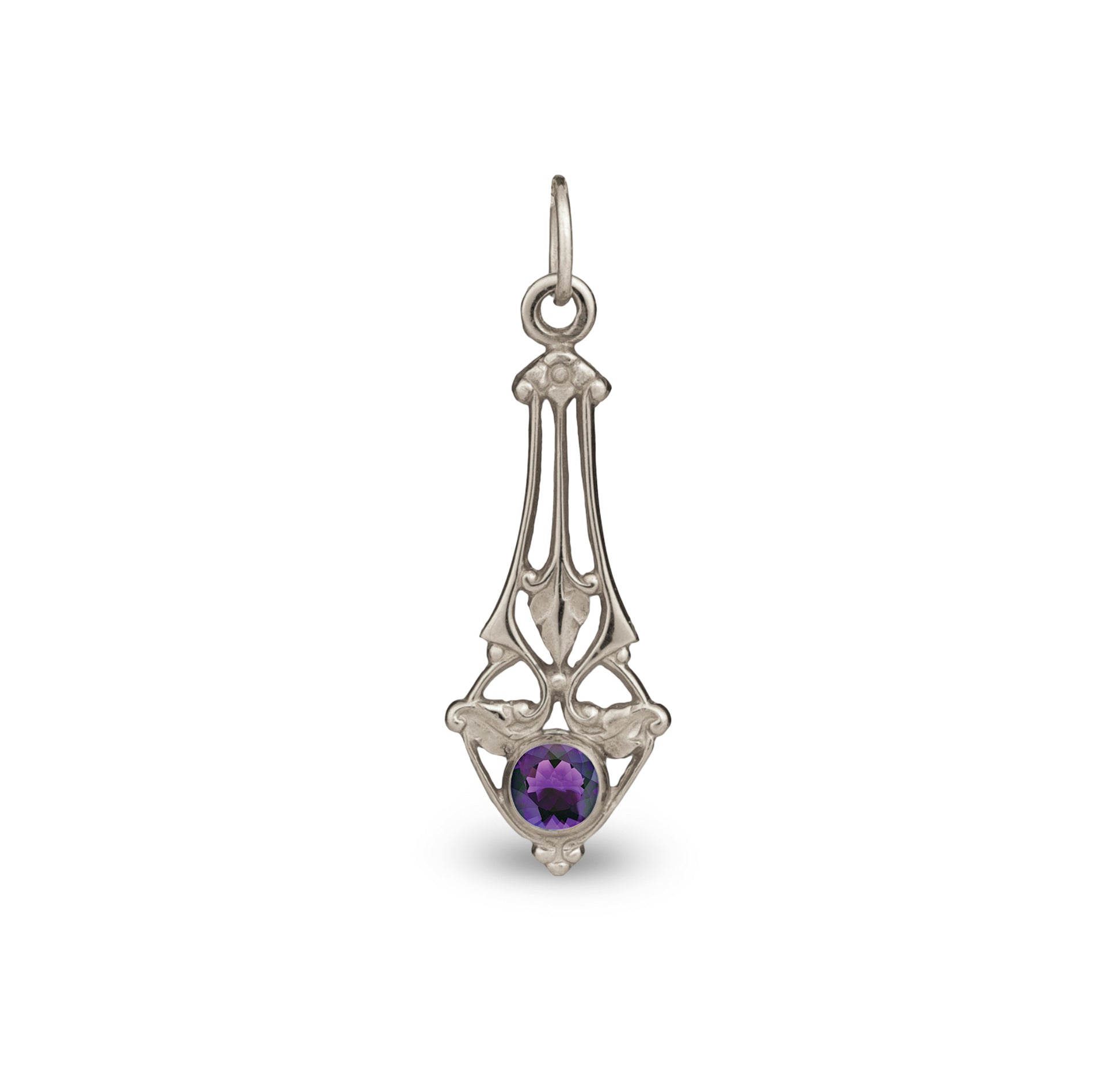 Designed with simple veronica blossoms, sinuous art nouveau lines, and flowing leaves of ivy, these dangling earrings represent the never-ending bond and devotion of friendship and marriage. They are bezel set with your choice of a 4.5mm round diamond or gemstone.