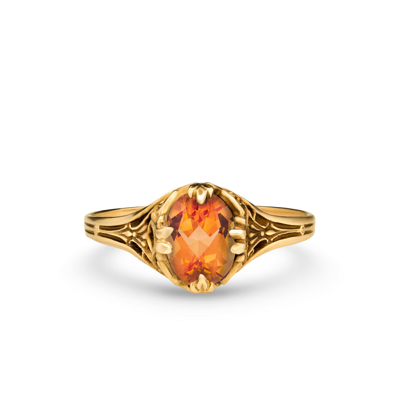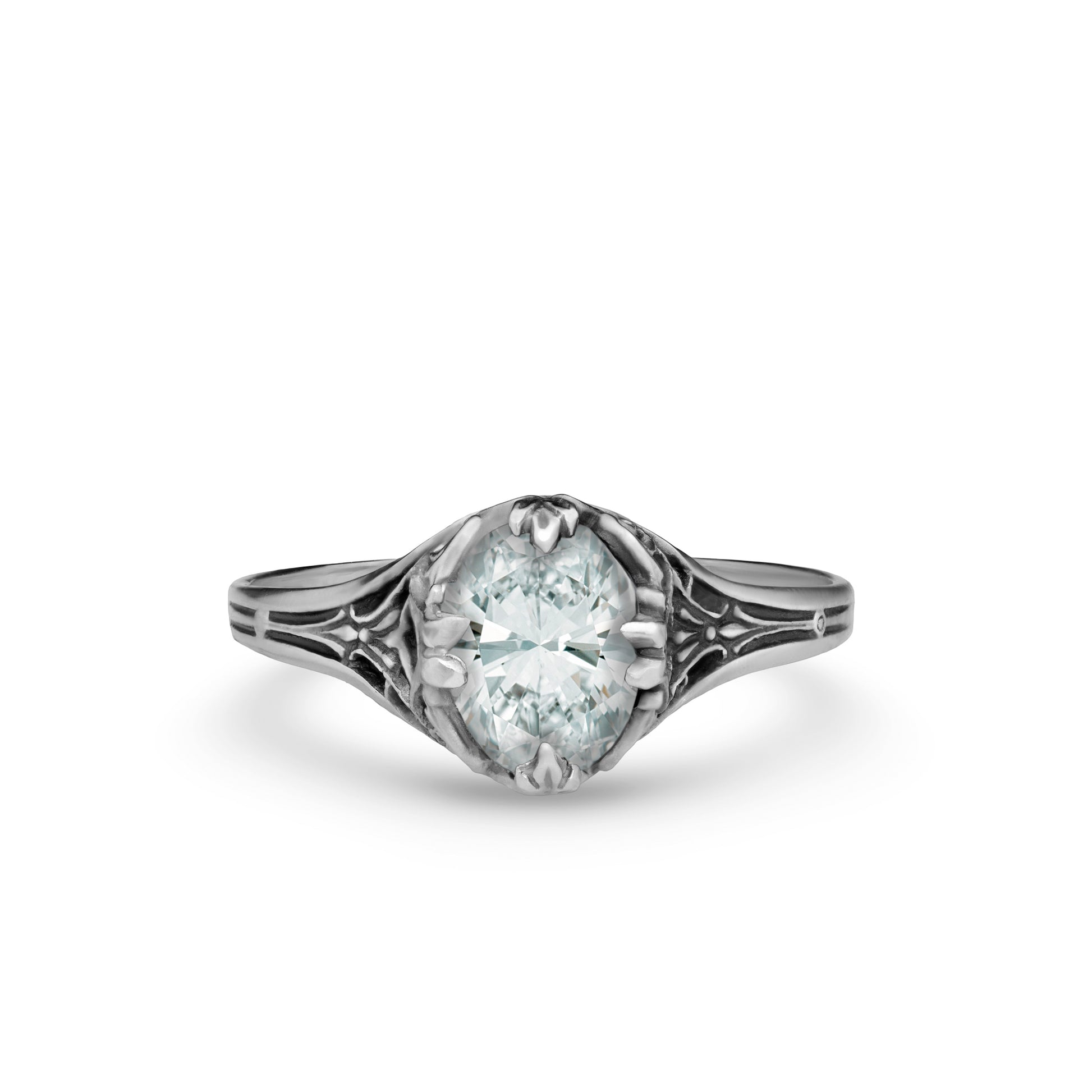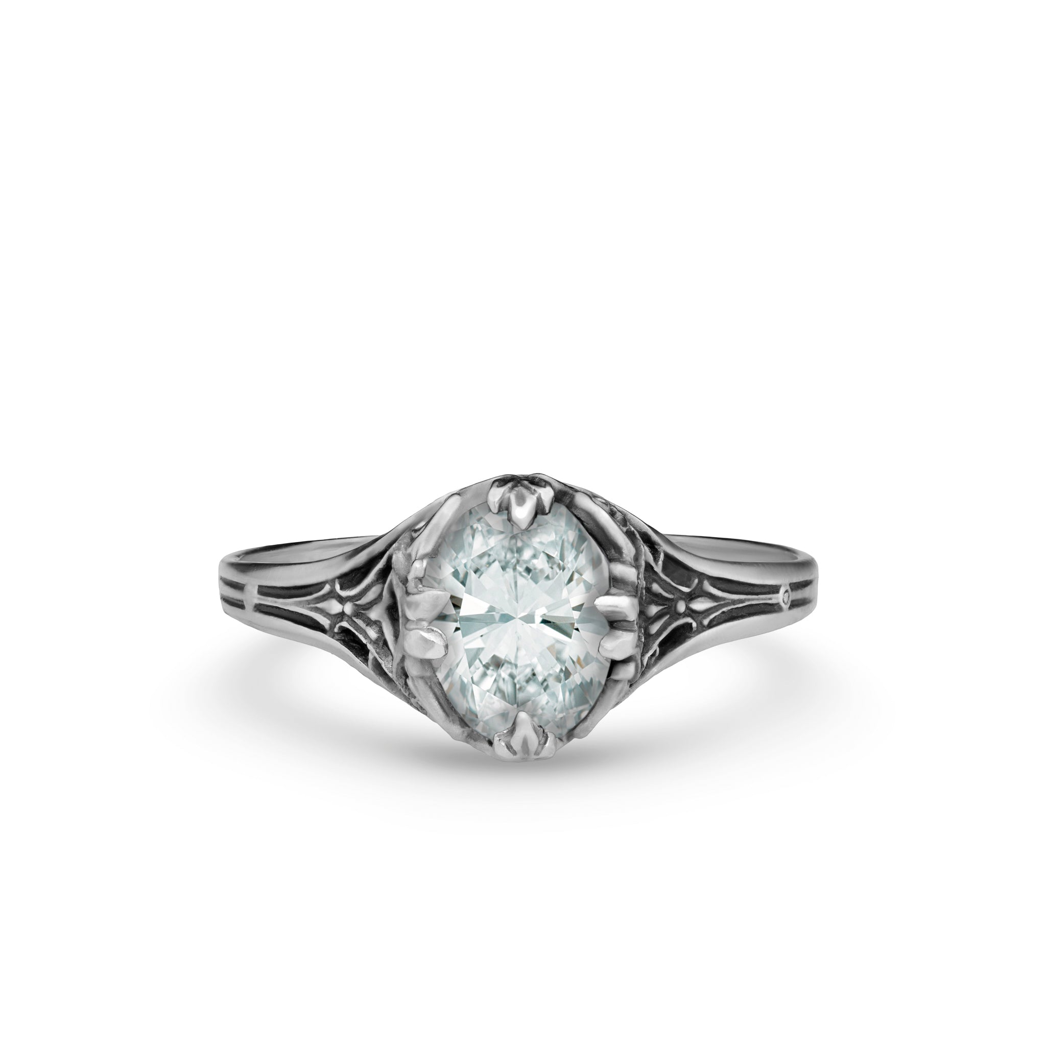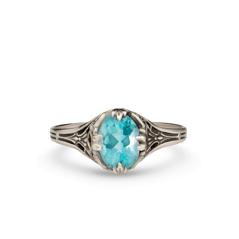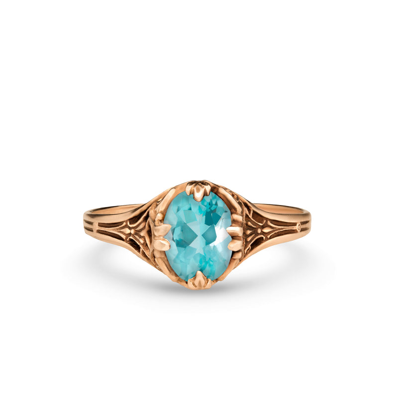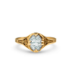 This delicate ring features an oval-cut 8 x 6mm stone resting in a wreath of laurel leaves and flowers, which symbolize victory and achievement. The use of laurel to recognize these traits dates back to Ancient Greece, with laurel wreaths often being presented to winners of the Olympic Games. This historical significance makes Laurel the perfect gift to celebrate any achievement.