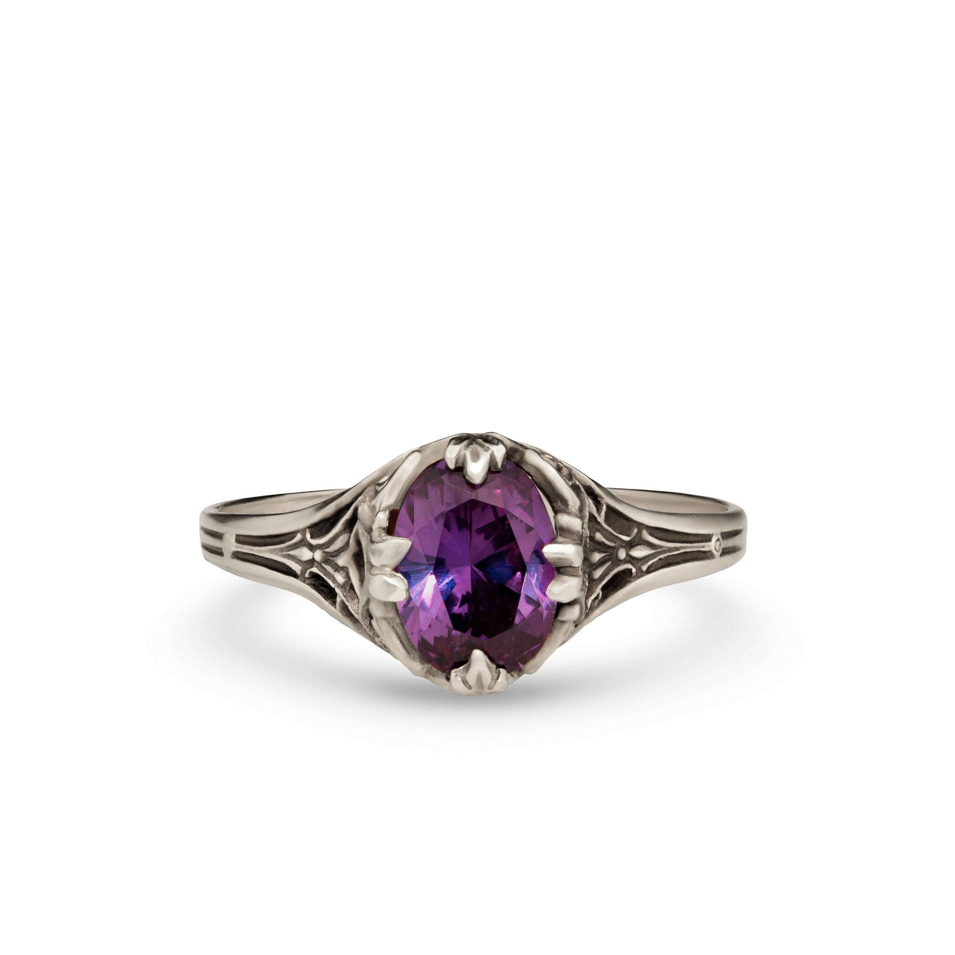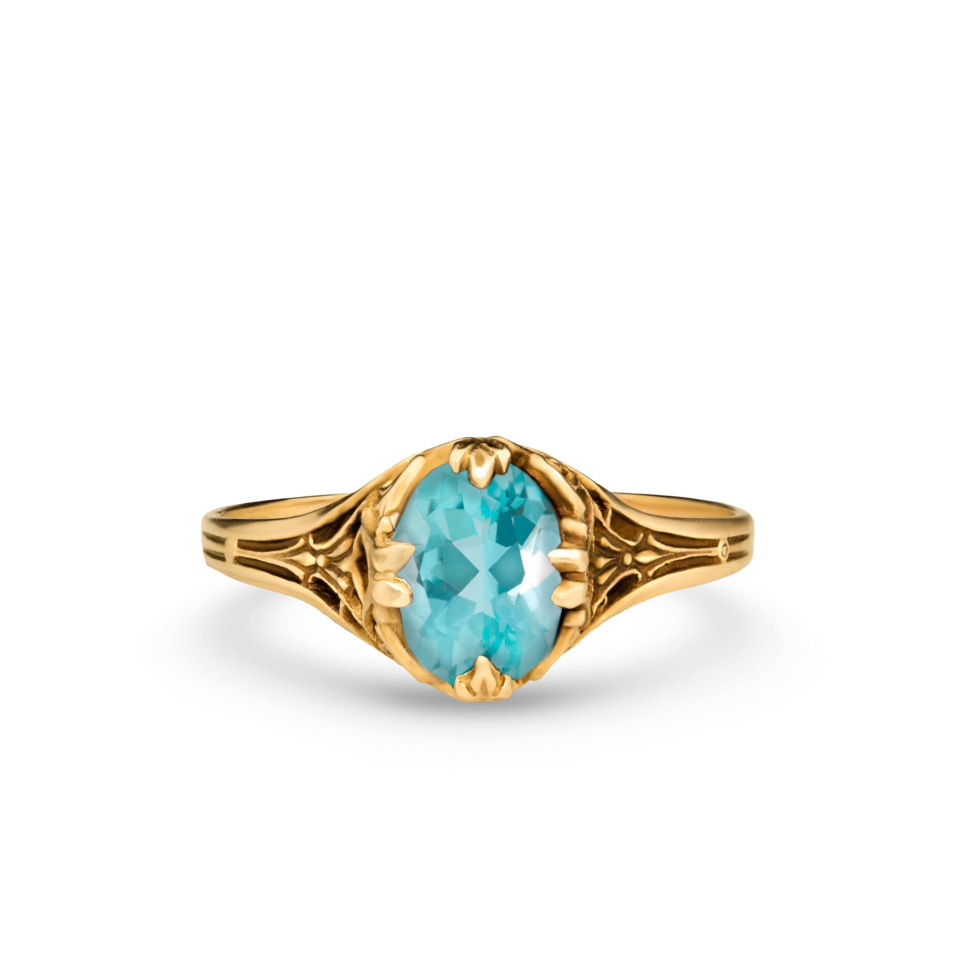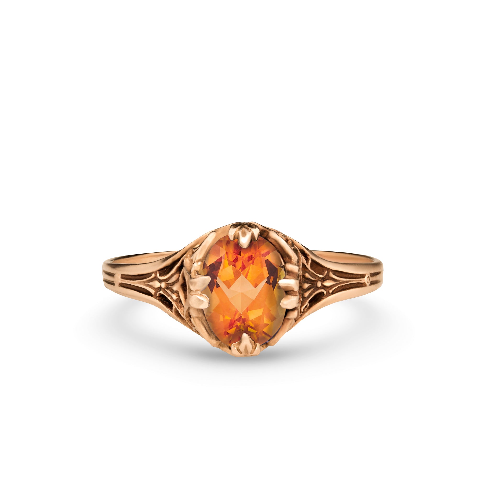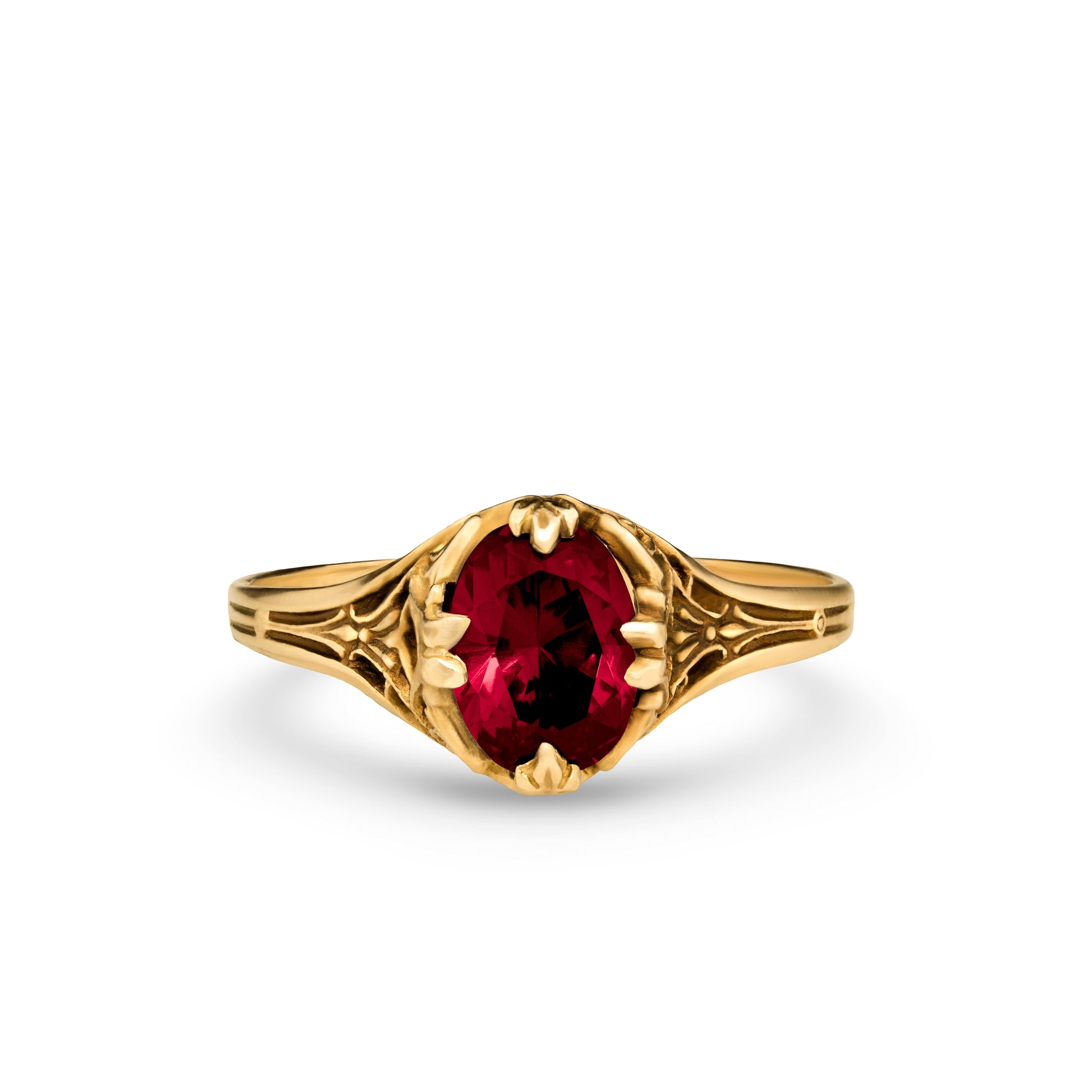 This delicate ring features an oval-cut 8 x 6mm stone resting in a wreath of laurel leaves and flowers, which symbolize victory and achievement. The use of laurel to recognize these traits dates back to Ancient Greece, with laurel wreaths often being presented to winners of the Olympic Games. This historical significance makes Laurel the perfect gift to celebrate any achievement.