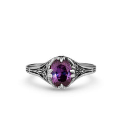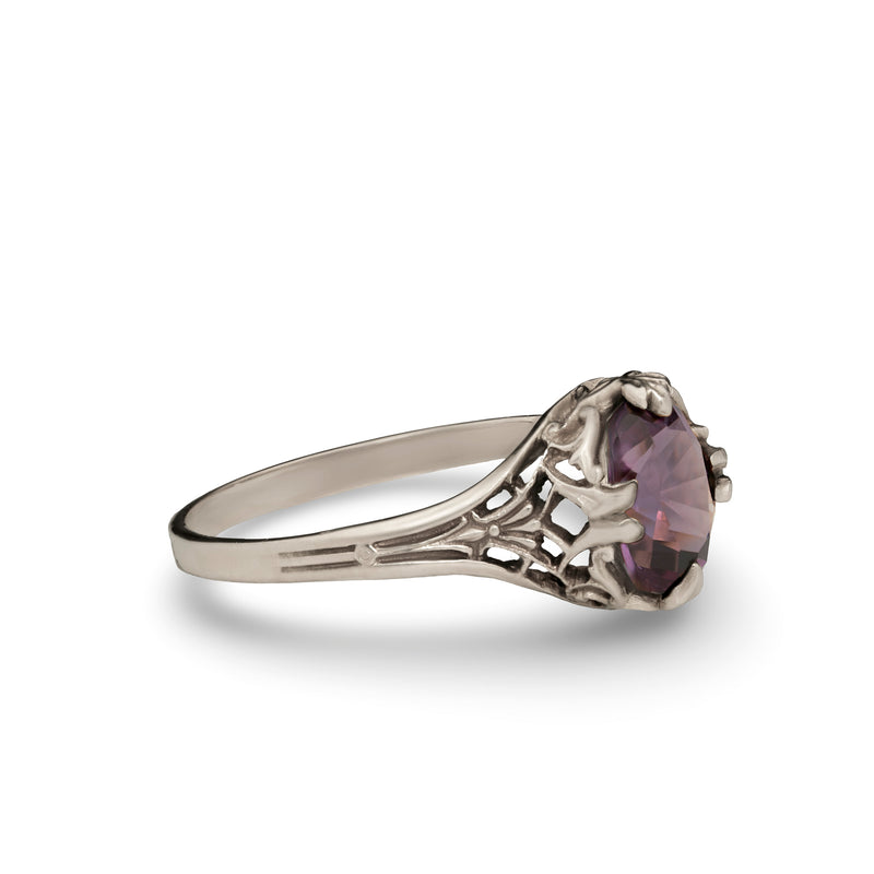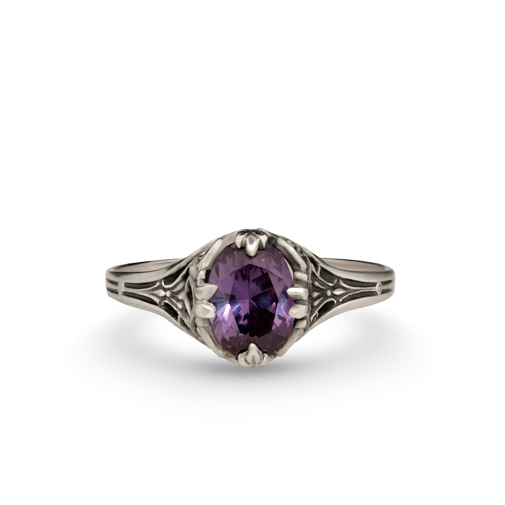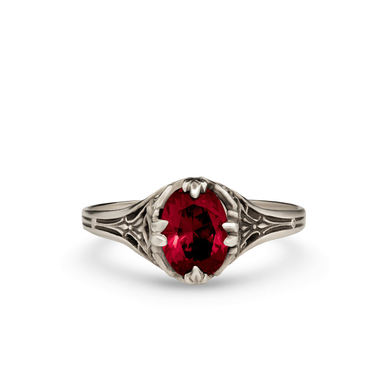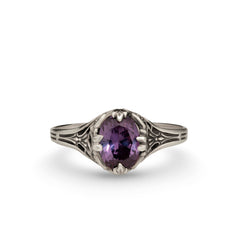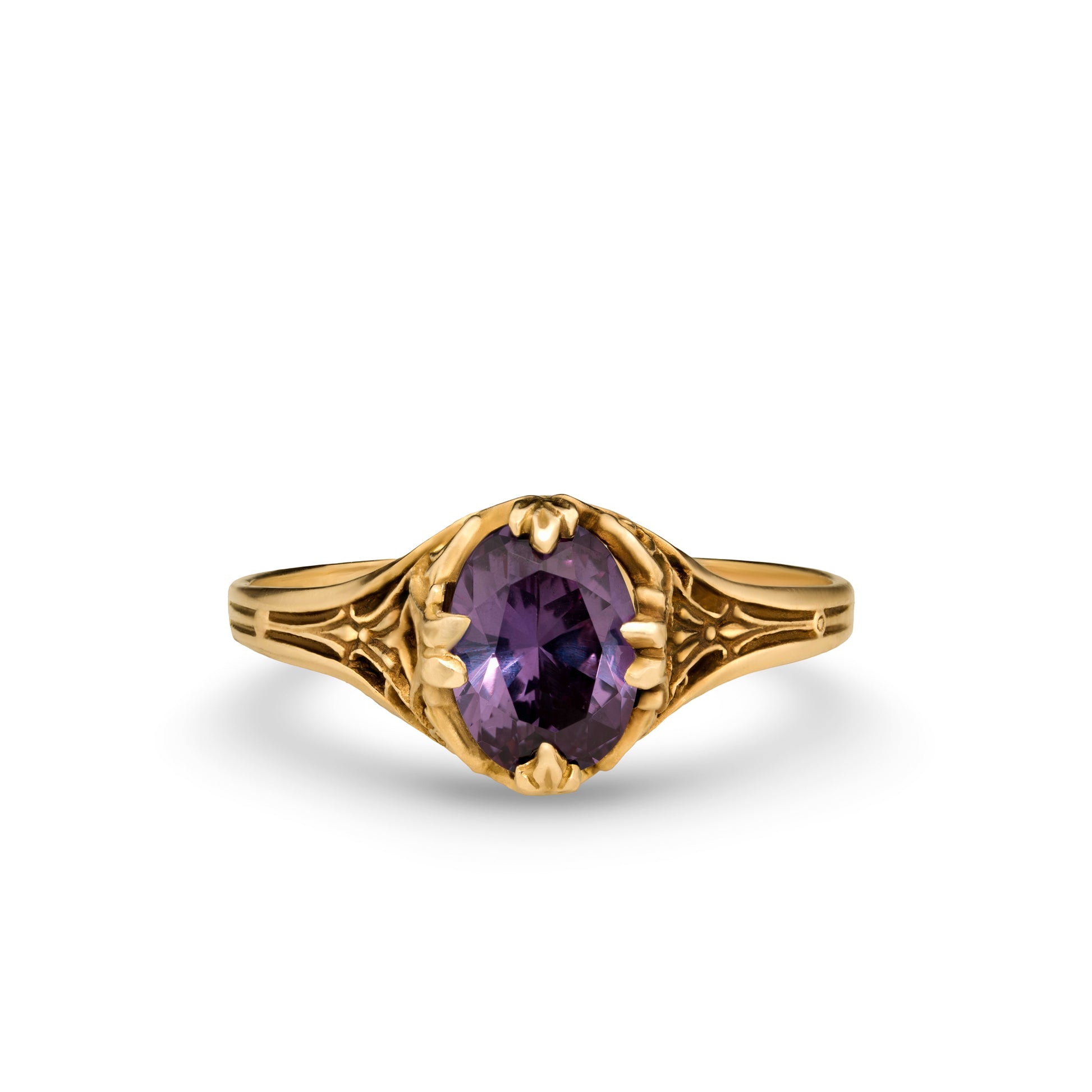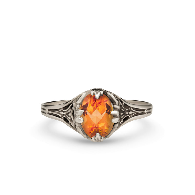 This delicate ring features an oval-cut 8 x 6mm stone resting in a wreath of laurel leaves and flowers, which symbolize victory and achievement. The use of laurel to recognize these traits dates back to Ancient Greece, with laurel wreaths often being presented to winners of the Olympic Games. This historical significance makes Laurel the perfect gift to celebrate any achievement.