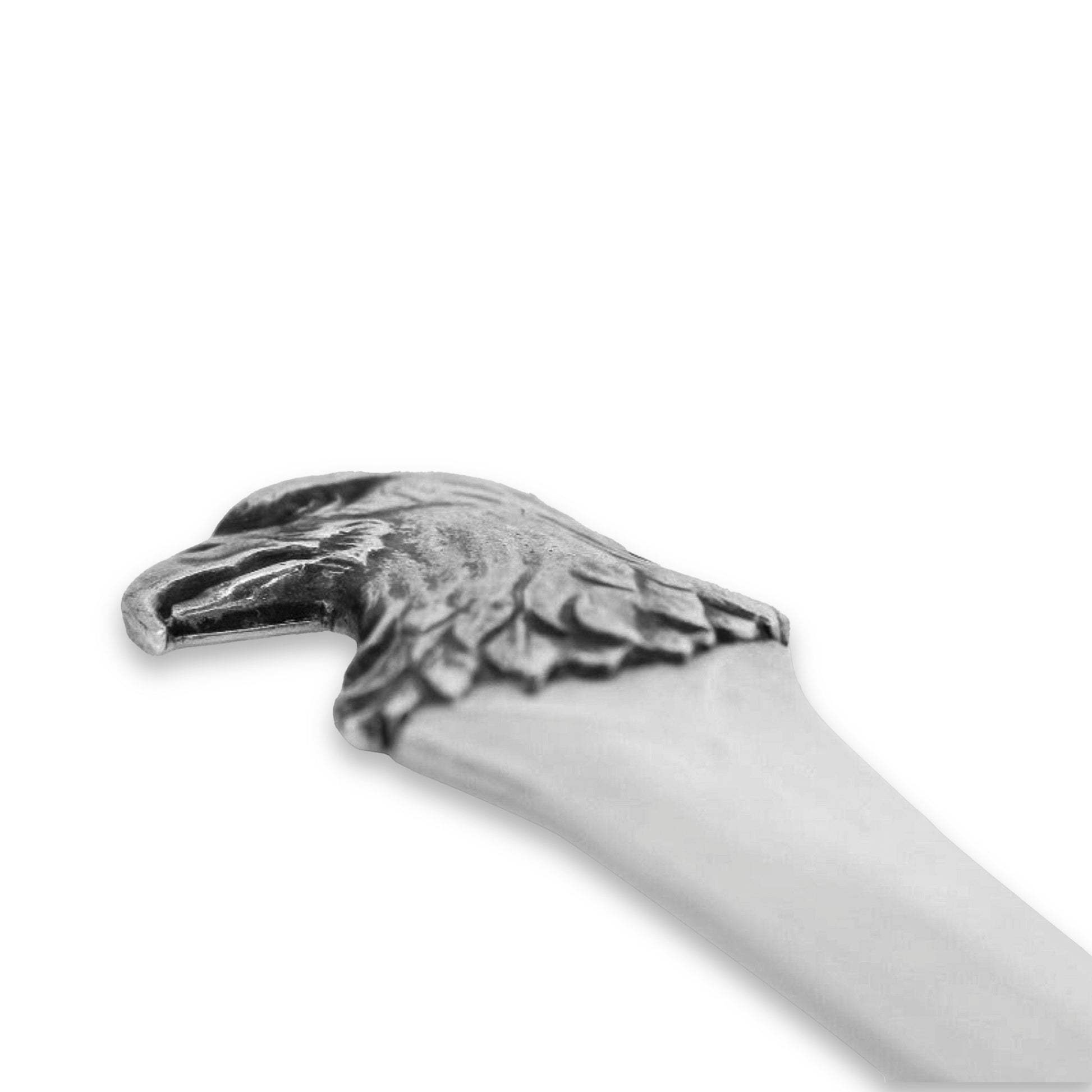 Also known as the king of the skies, the eagle has enjoyed connotations of victory and power since antiquity. This sterling silver letter opener is a perfect depiction of victory and inspiration.