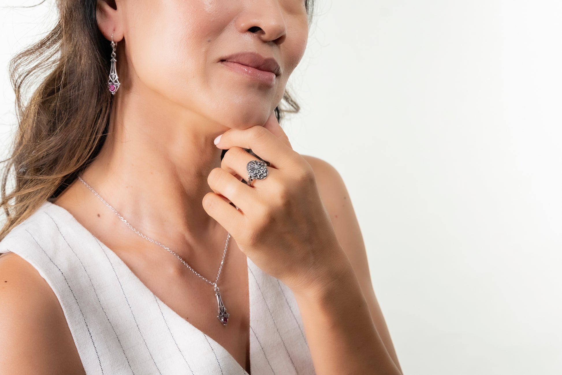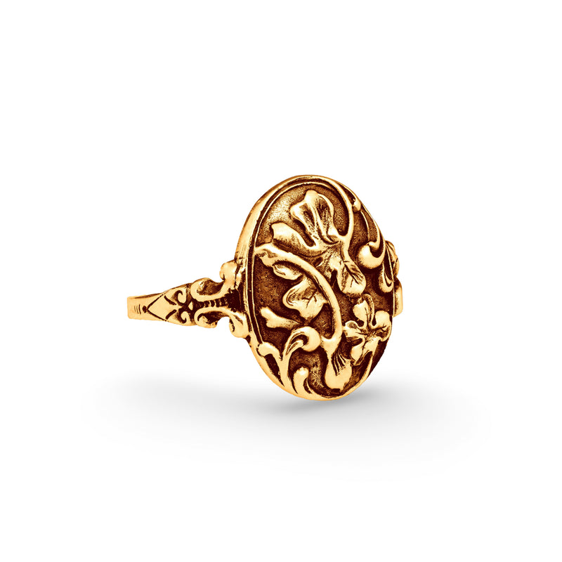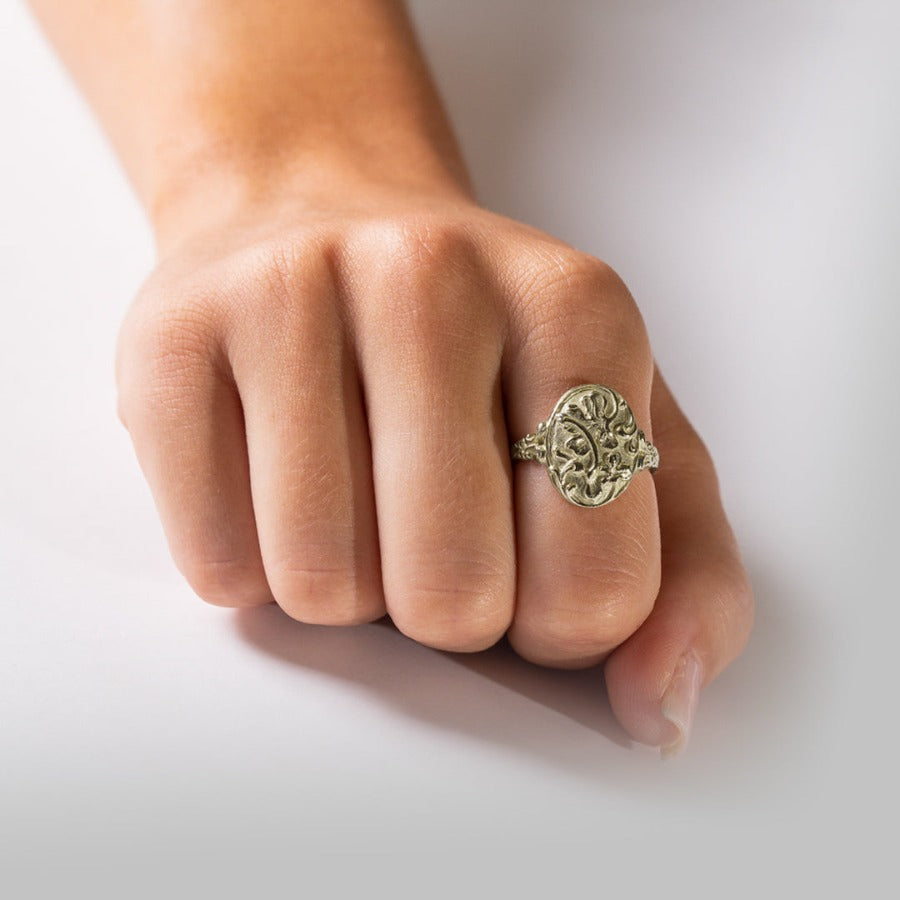 This Victorian-era whimsy ring features hand-carved clover and wishbone, bringing luck and prosperity to its wearer.