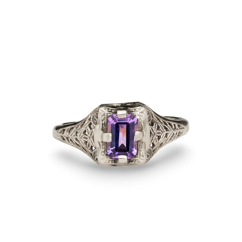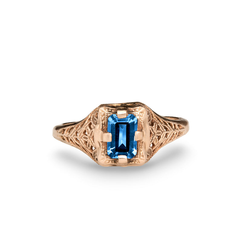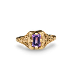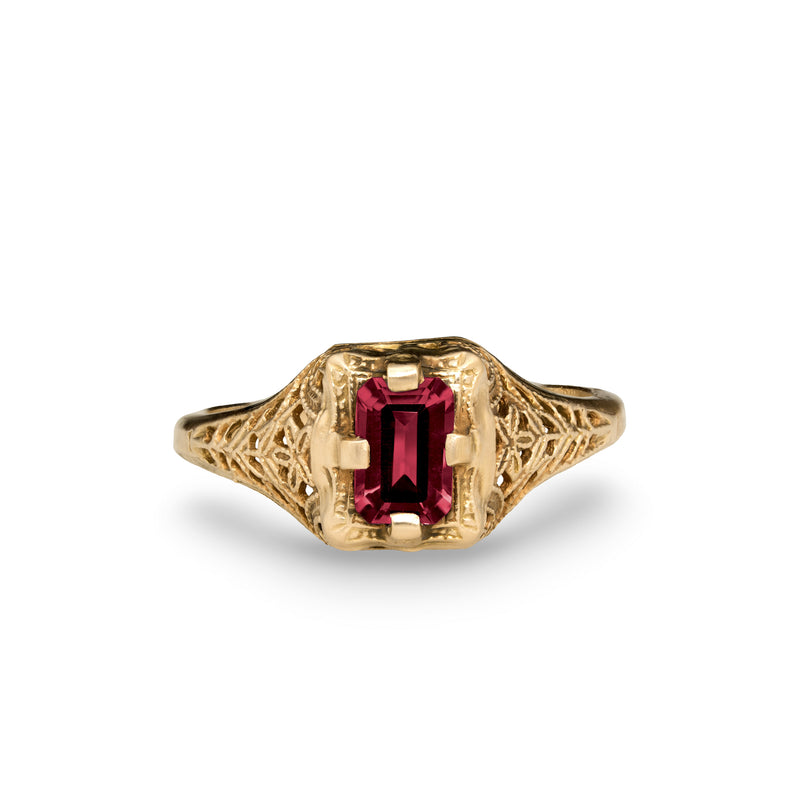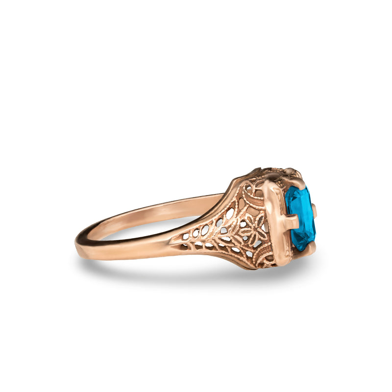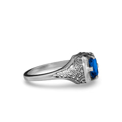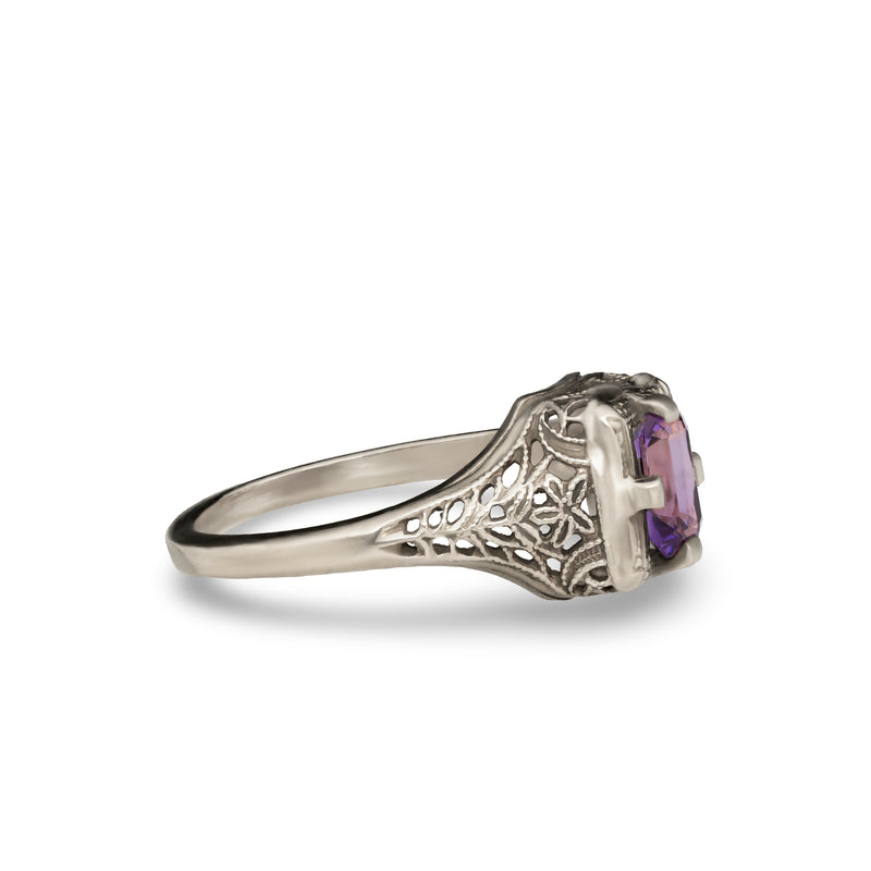 The Plumeria Ring represents a new beginning. The band is decorated with a dainty plumeria flower surrounded by intricate detailing. The flower is historically symbolic of creation and recreation. With a wide variety of metals and gemstones, Plumeria can be customized entirely by you.