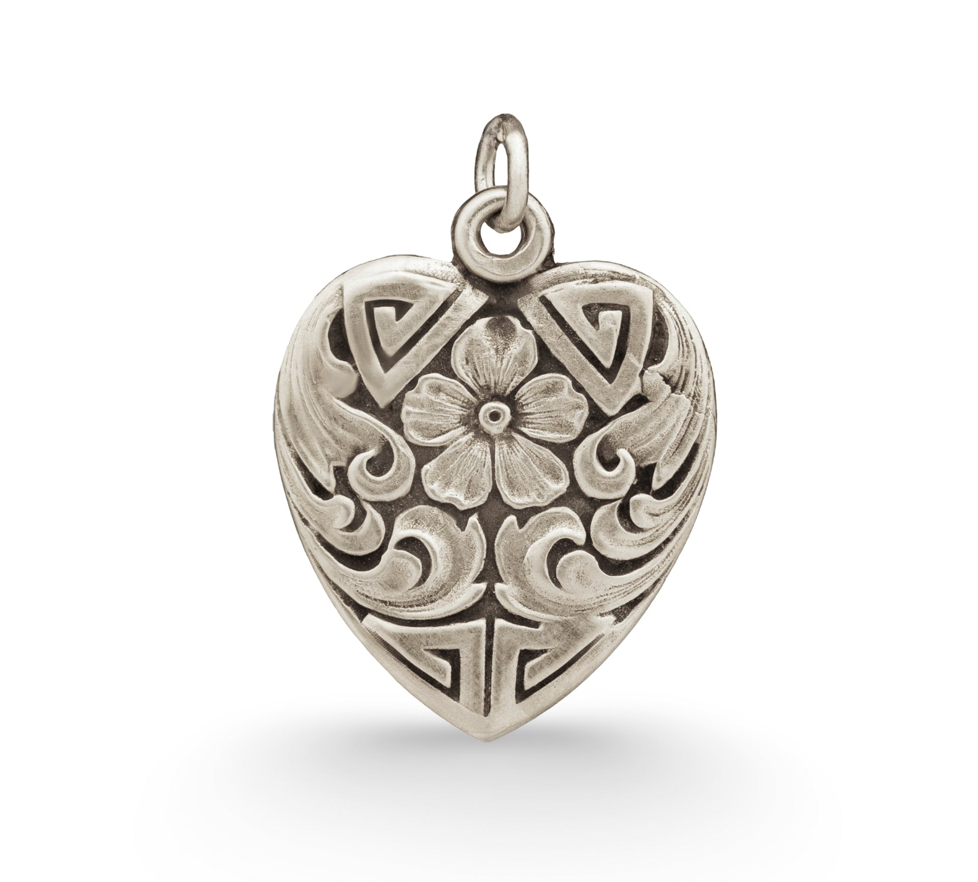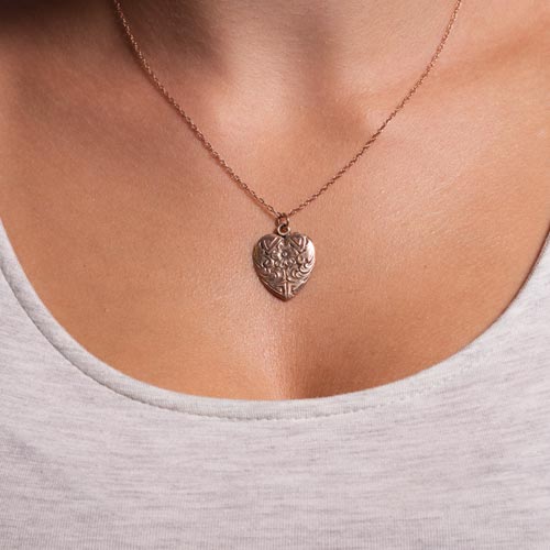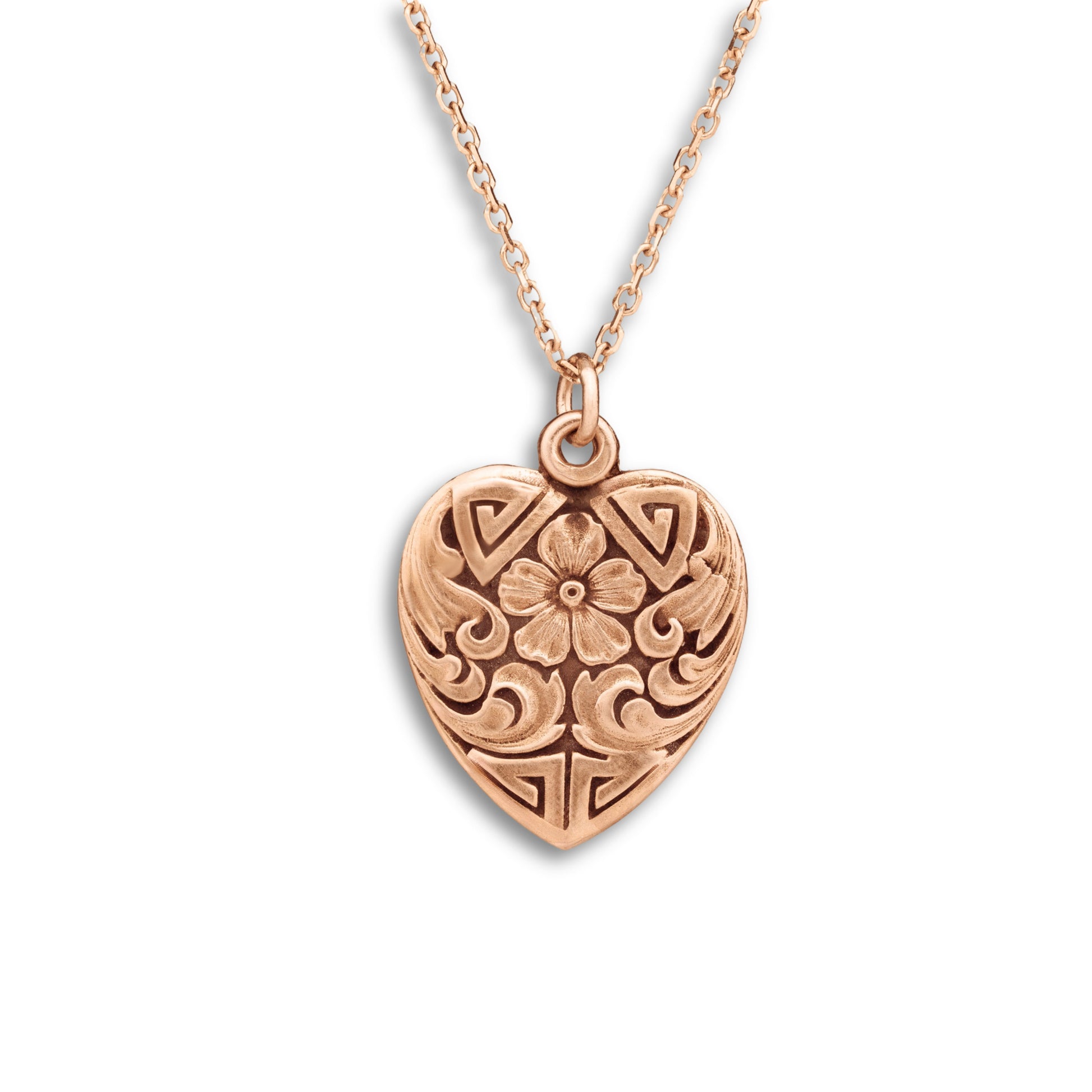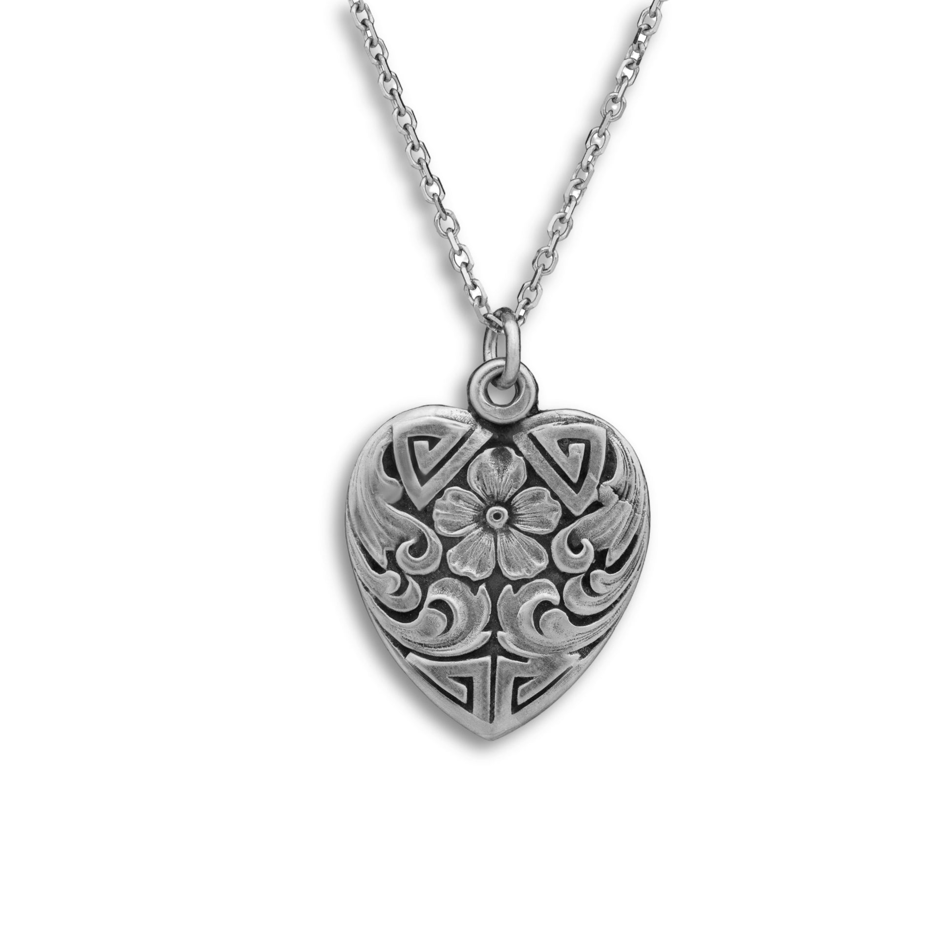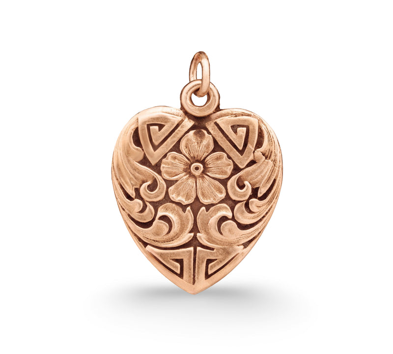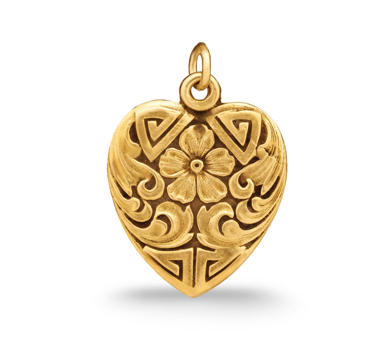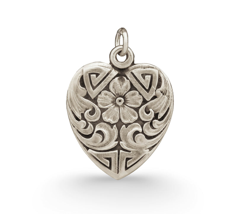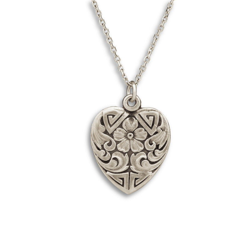 During the 1800s, geraniums were presented as a symbol of true friendship, refinement, and esteem. Acanthus leaves symbolized wisdom, health, and eternity. This Victorian heart-shaped pendant combines both sentiments and is the perfect gift for you or someone you regard.