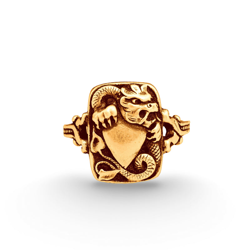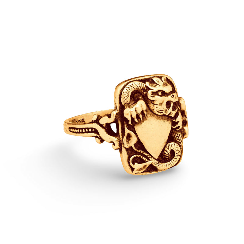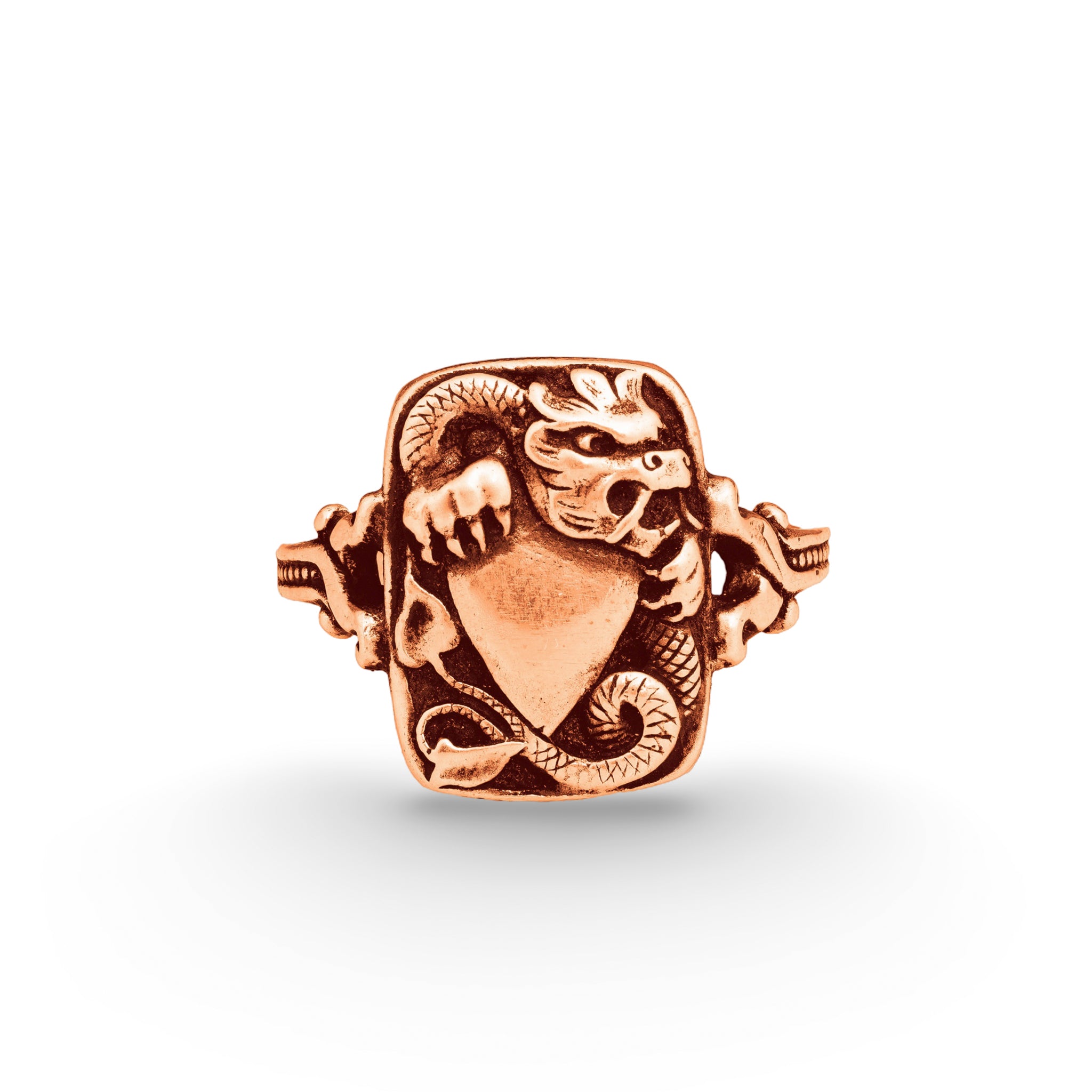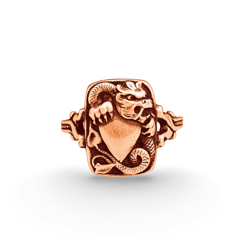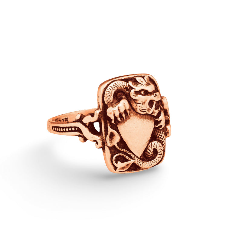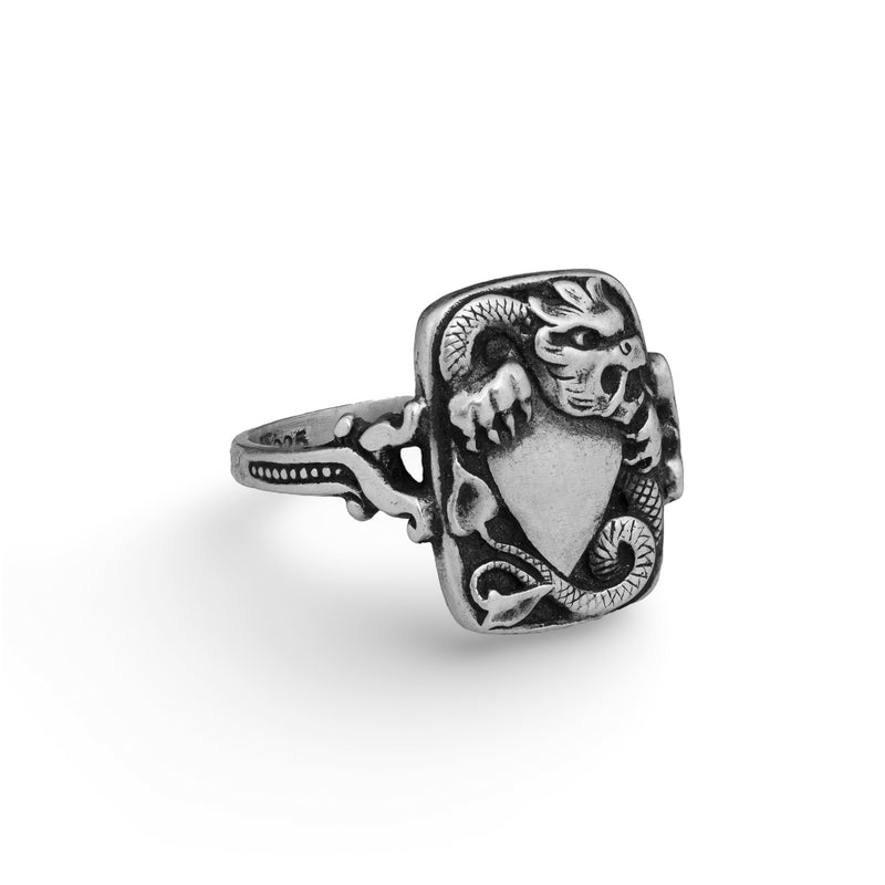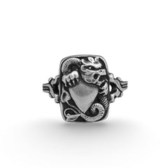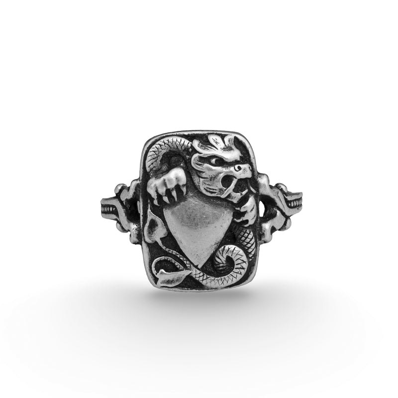 'The Guardian' is a rectangular ring that depicts a dragon protecting the heart in the center. Dragons are believed to have been guardians and symbolize intelligence, harmony, and confidence.