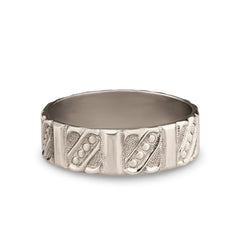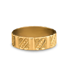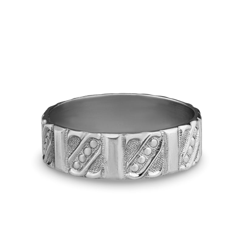 This men's vintage band is detailed with four diagonal dots and diagonal lines, giving the band the feeling of movement.